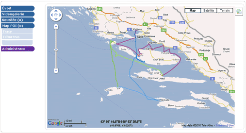 Do základní časti se dostanete v levém menu přes Map POI >> Trasy.